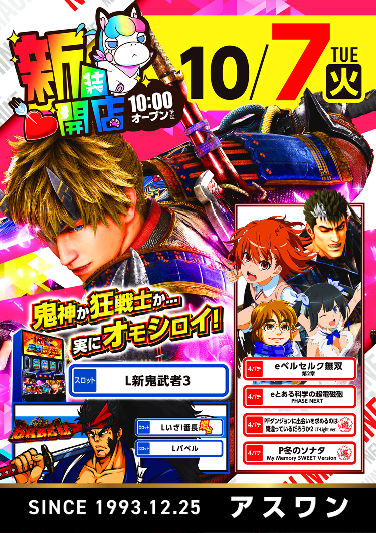 アスワン船橋 最新導入機種・店舗のご案内!!
